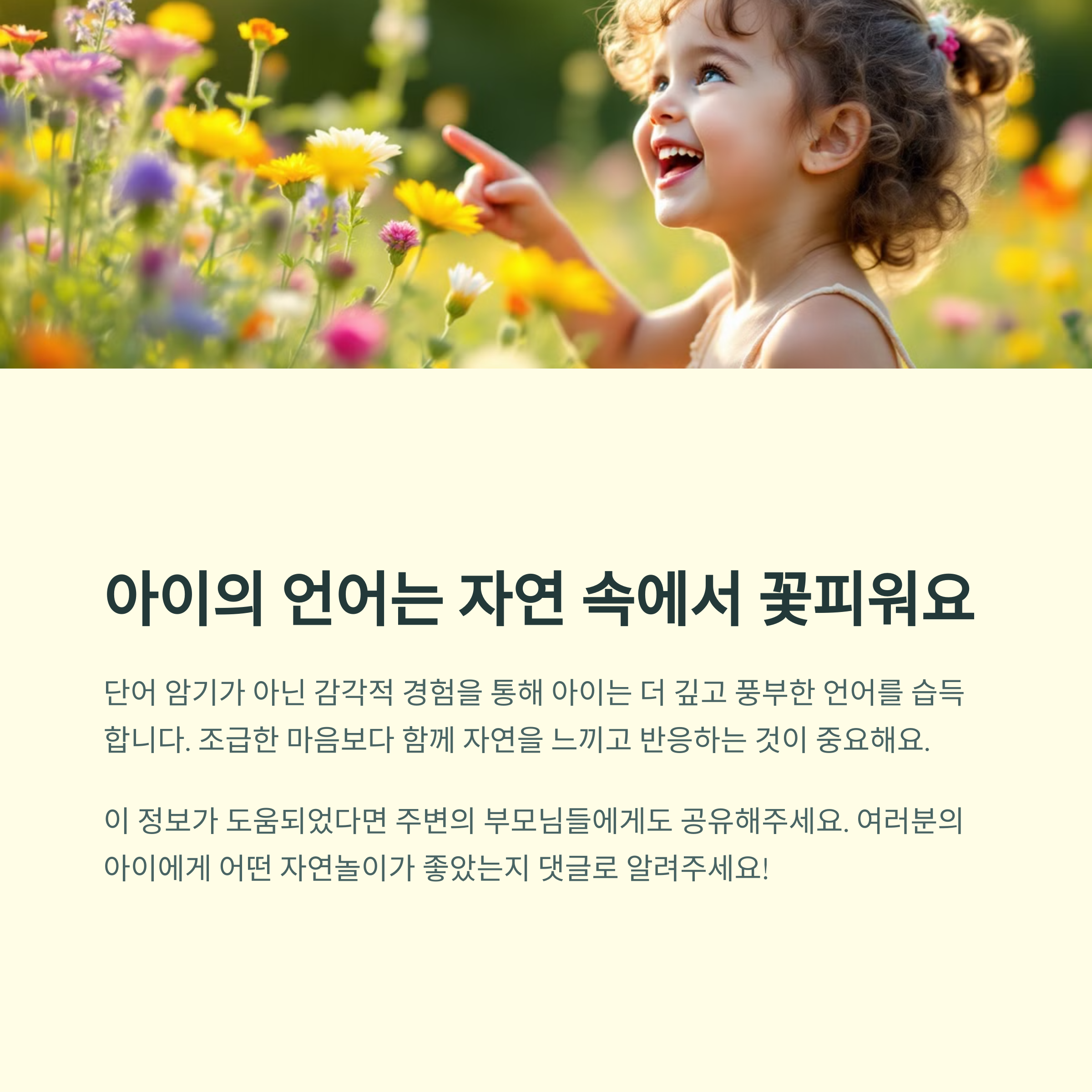 자연은 기다릴 줄 아는 언어 교사이자, 아이의 마음을 여는 마법 같은 교실이다.