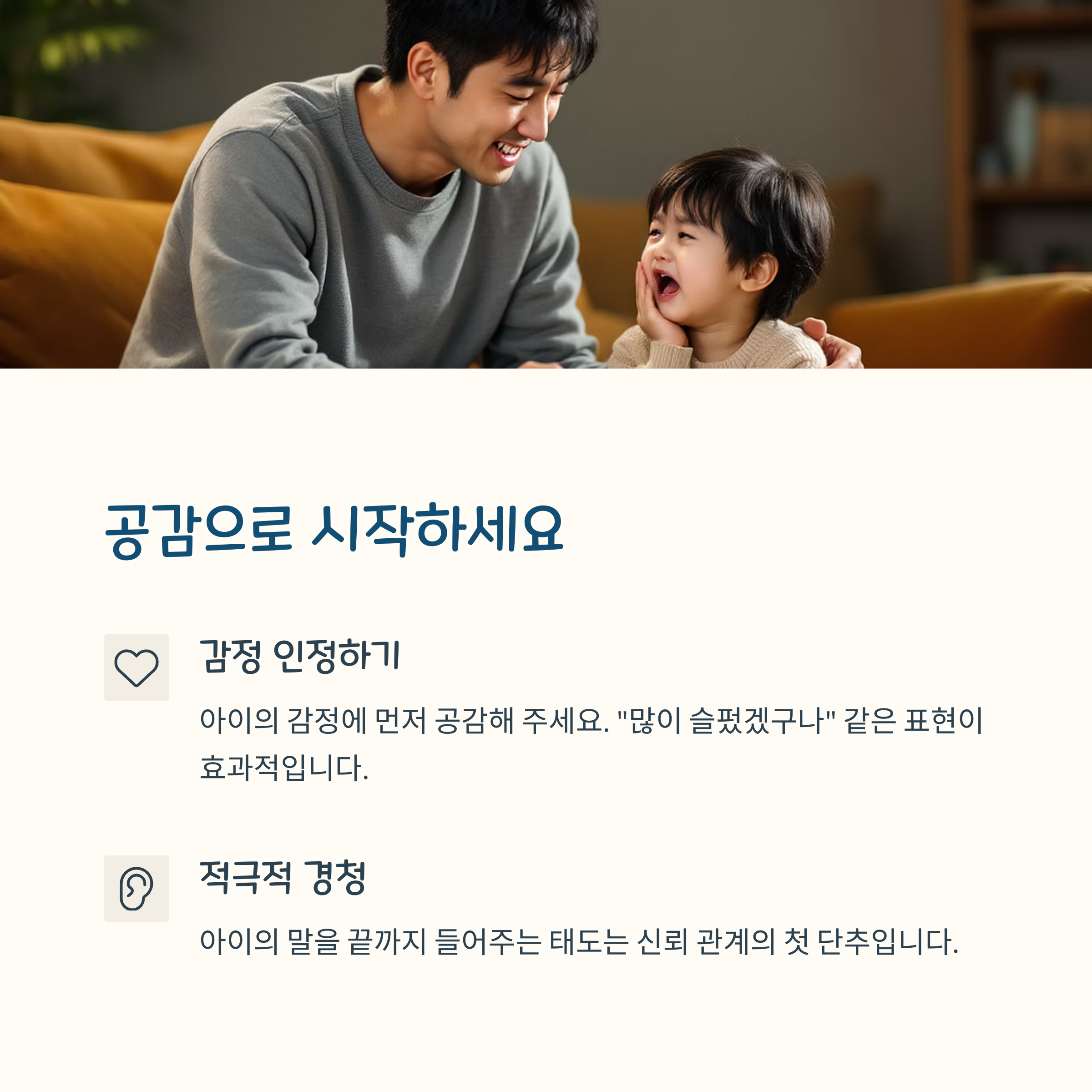 → 공감 → 감정 해석 → 대안 제시는 훈육의 정석 공식이다.