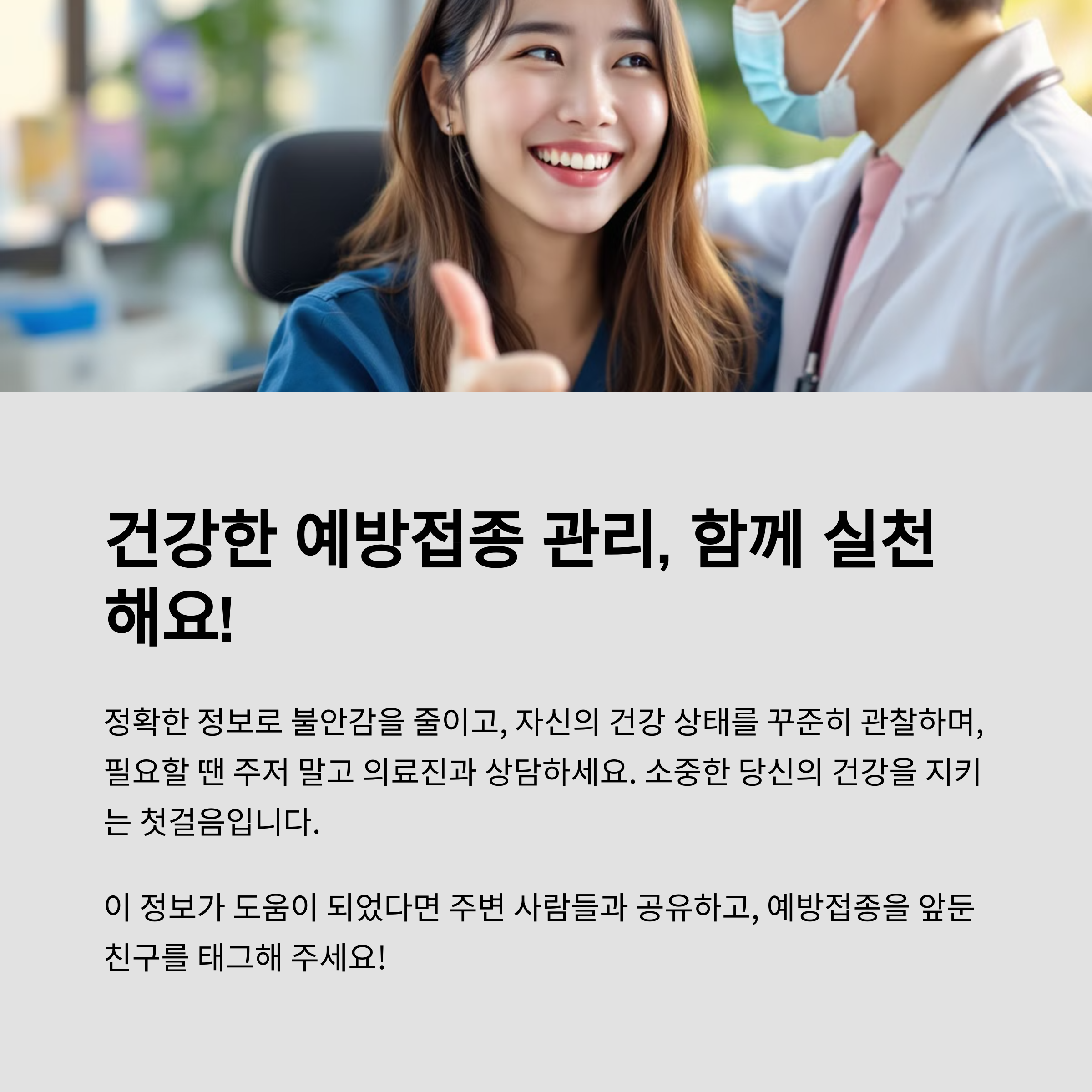 예방접종에 대한 올바른 정보와 적절한 대처법을 알고 실천하는 것이 건강한 일상을 유지하는 첫걸음입니다.