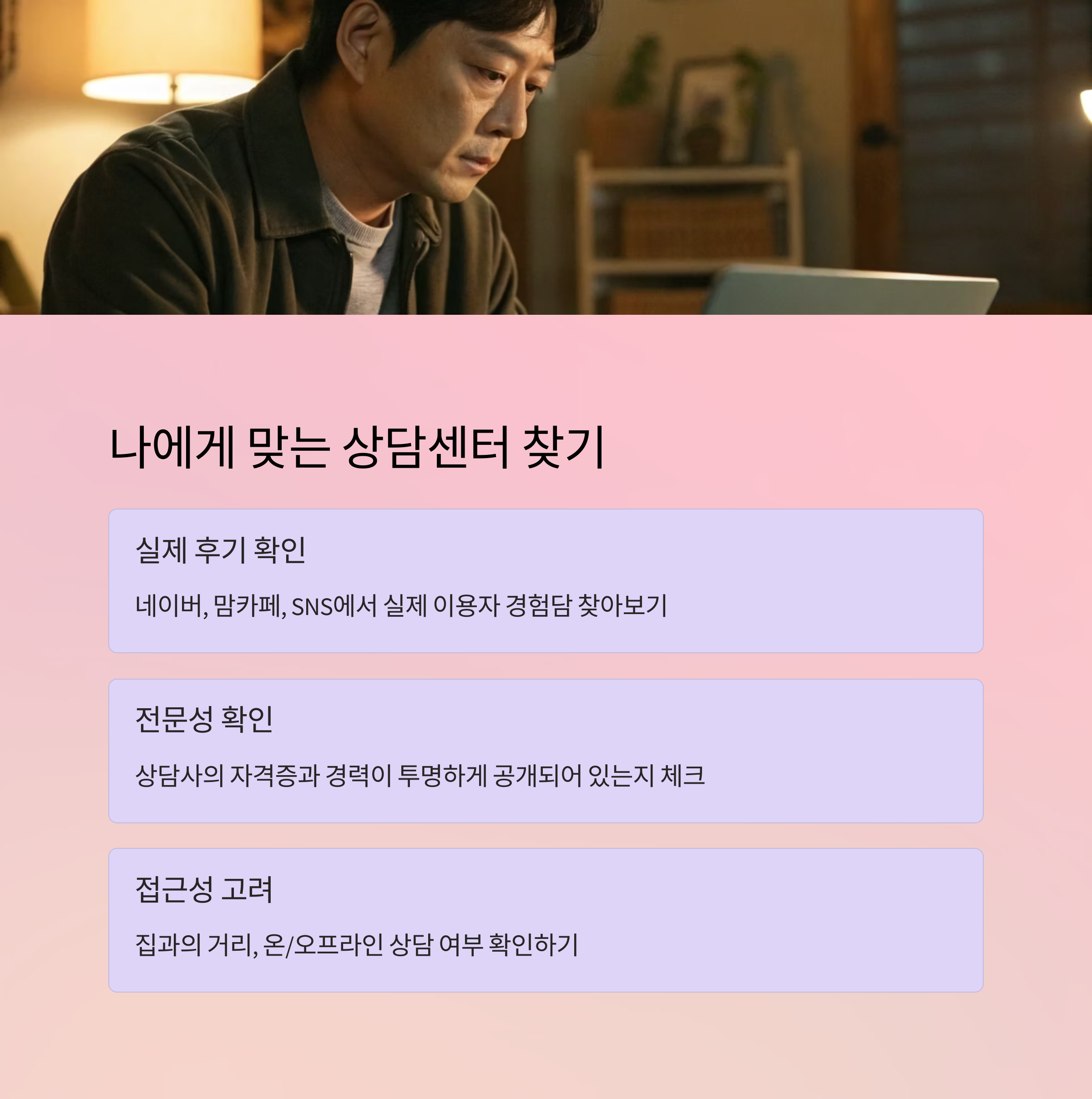 - 둘째, 상담사의 전문 자격과 경력 여부를 확인하세요.