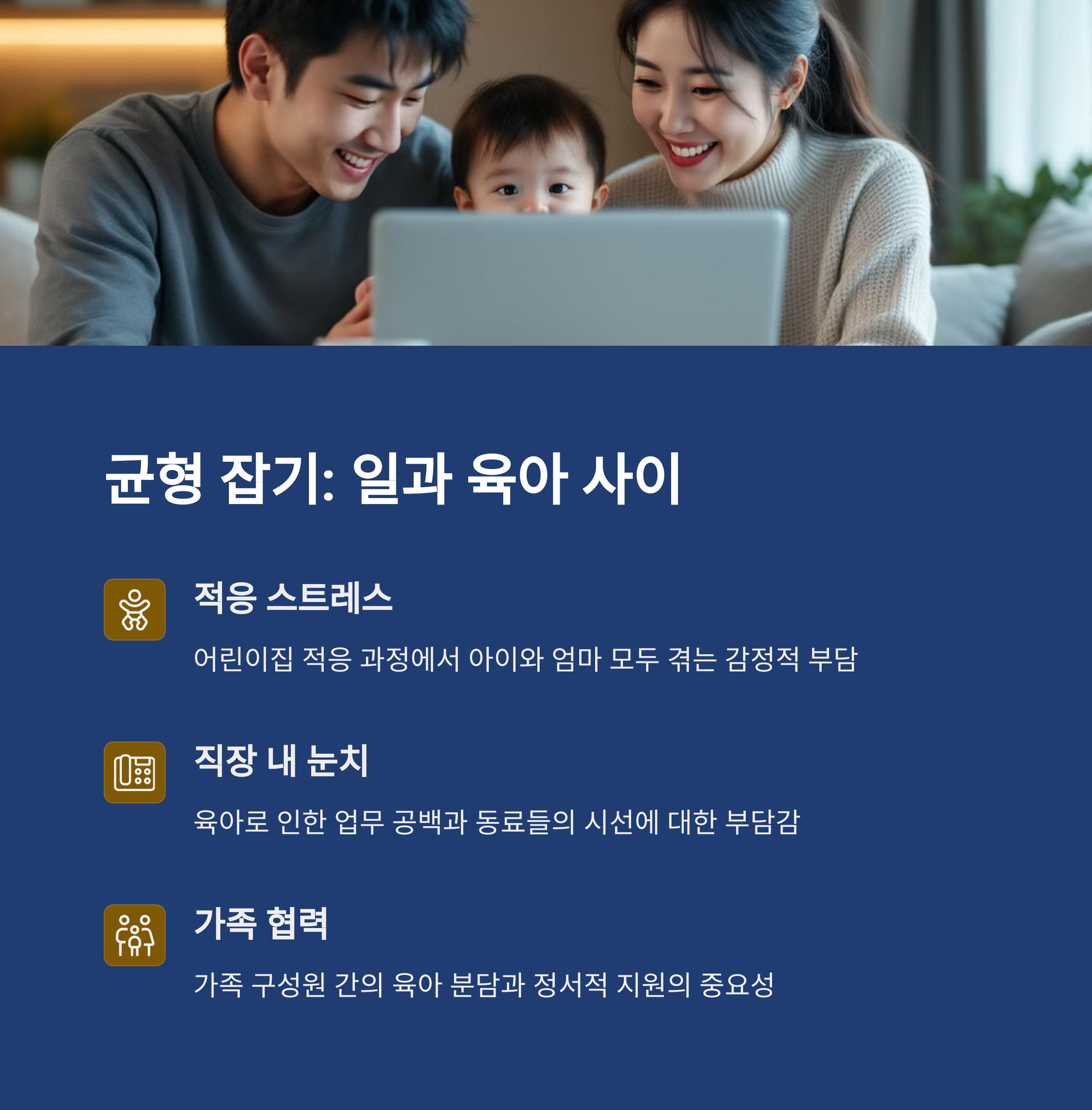 일과 육아를 동시에 해내는 일은 결코 쉽지 않다. 그러나 완벽하려는 부담을 내려놓고, ‘지속 가능한 방식’을 찾는 것이 더 중요하다. 모든 문제를 한 번에 해결할 수는 없지만, 고민을 나누고, 제도를 활용하고, 자신의 감정을 돌보는 일은 분명한 변화로 이어진다.