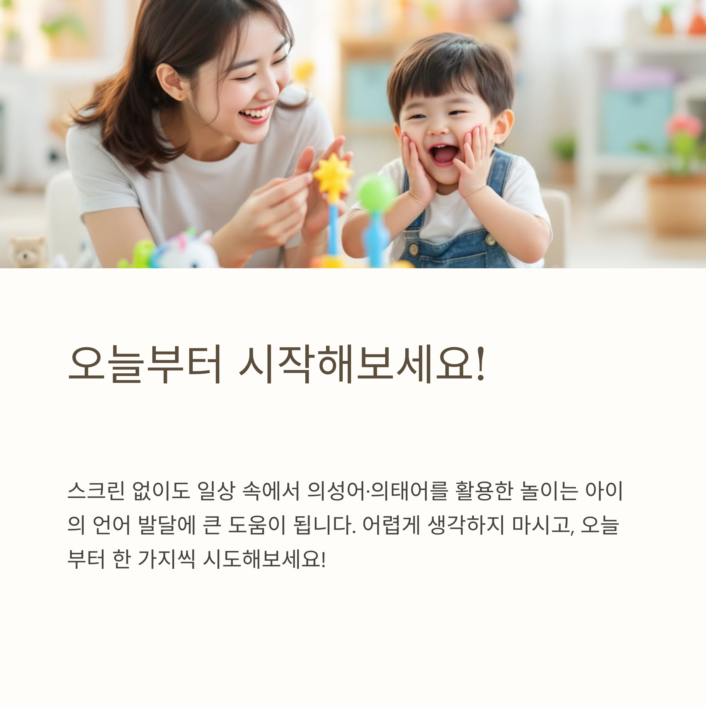 오늘부터 매일 한 가지 소리를 중심으로 아이와 함께 놀이해보자.
